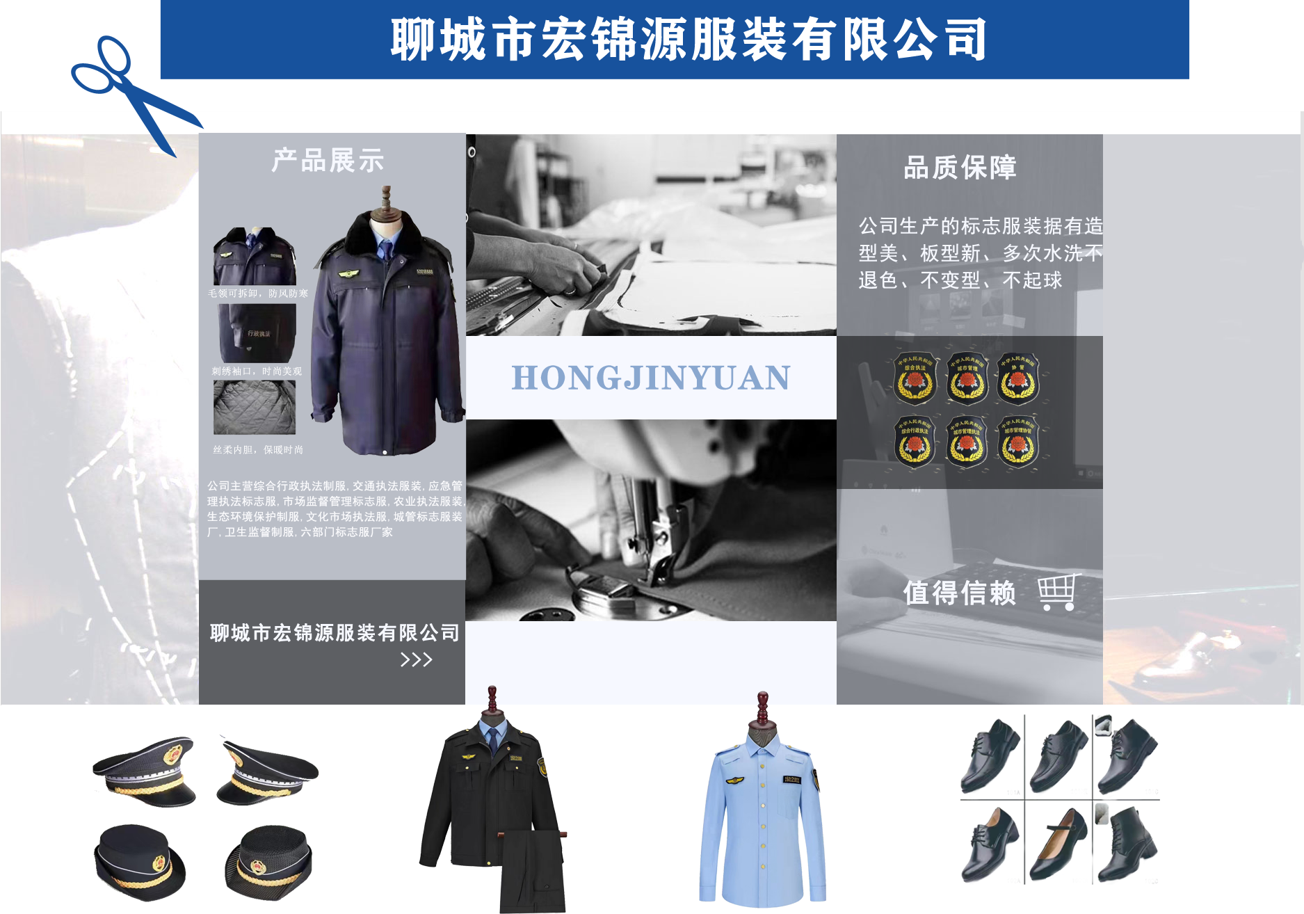聊城市宏錦源服裝有限公司位于江北水城—山東聊城,地理位置優(yōu)越,交通便利。公司主營綜合行政執(zhí)法制服,交通執(zhí)法服裝,應(yīng)急管理執(zhí)法標(biāo)志服,市場監(jiān)督管理標(biāo)志服,農(nóng)業(yè)執(zhí)法服裝,生態(tài)環(huán)境保護(hù)制服,文化市場執(zhí)法服,城管標(biāo)志服裝廠,衛(wèi)生監(jiān)督制服,六部門標(biāo)志服廠家等,值得信賴! 公司生產(chǎn)的標(biāo)志服裝據(jù)有造型美、板型新、多次水洗不退色、不變型、不起泡?! 罢J(rèn)真辦事,踏實(shí)做人”是宏錦源的企業(yè)精神,我們的宗旨是:“用服務(wù)與真誠來換取你的信任與支持,互惠互利,共創(chuàng)雙贏!”我公司愿與國內(nèi)外各界同仁志士竭誠合作,共創(chuàng)未來企業(yè)目標(biāo):在已選定的服飾領(lǐng)域中,成為行業(yè)的卓越者?! 〗?jīng)營理念:追求產(chǎn)品卓越,為用戶提供完美、高效的服務(wù)。...